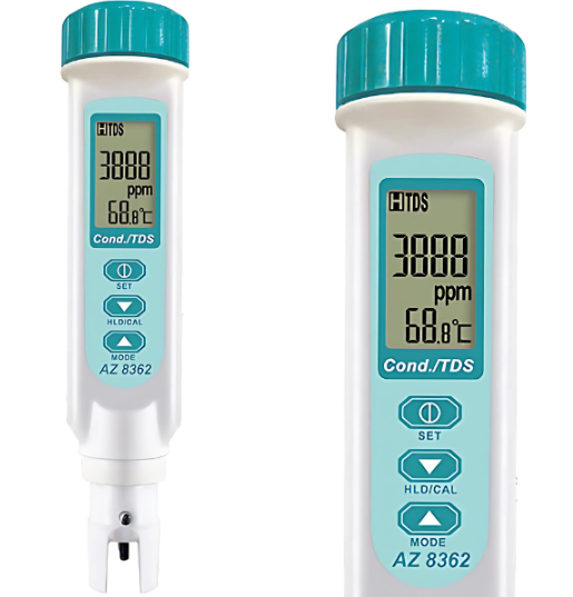 – AZ 8362 elektriksel iletkenlik ve TDS ölçüm cihazı; su çözeltilerinde EC (iletkenlik), TDS (Toplam Çözünmüş Katı Madde) ve sıcaklık ölçümleri yapabilir. EC İletkenlik birimi olarak µS ve mS, TDS birimi olarak ppm ve ppt kullanılır.