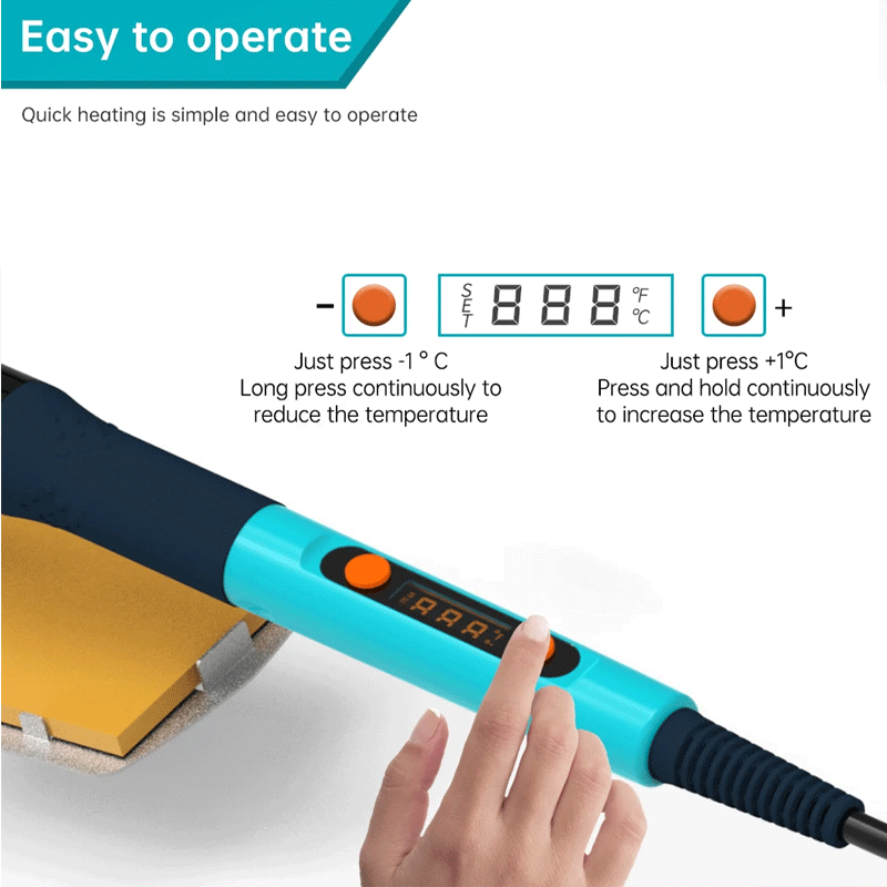 Küçük boyutuyla hafiftir ve ergonomiktir, uzun süreli kullanım için uygundur. Sıcaklık değerlerinde sapma olması durumunda digital sıcaklık kalibrasyon özelliği ile kalem havya kalibre edilebilir.