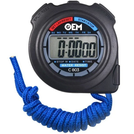 C803 dijital el tipi kronometre ürünü; 23 saat 59 dakika 59 saniyeye kadar ileri sayım yapabilen, boyundan askılı dijital kronometre cihazıdır.