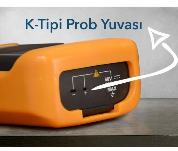 • Cihazın üst kısmında bulunan yuva ile cihaza tek kanallı K tipi prob bağlayabilirsiniz.