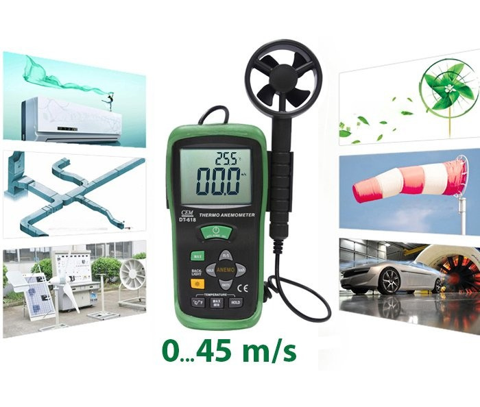 Cem DT-618 rüzgar hızı ve sıcaklık ölçer; akışta olan hava hızını ve bu havanın sıcaklığını ölçebilen, kablolu pervane probu bulunan, portatif anemometre çeşididir.