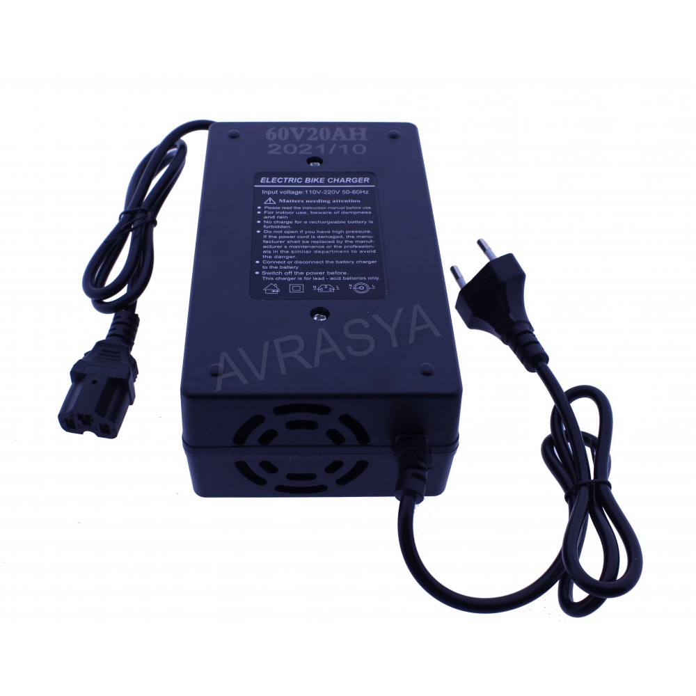 60 VOLT 20 AMPER 5 AKÜLÜ FANLI IŞIKLI KESİCİLİ MOTORSİKLET-ELEKTİRİKLİ BİSİKLET ŞARJ ADAPTÖRÜ