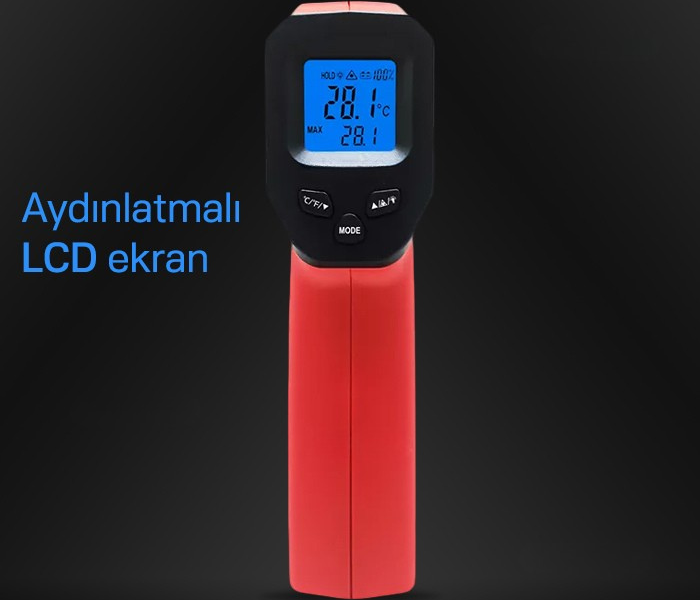 - Aydınlatmalı ekranı ile lazerli sıcaklık ölçüm cihazını karanlık ortamlarda kolayca kullanabilirsiniz.