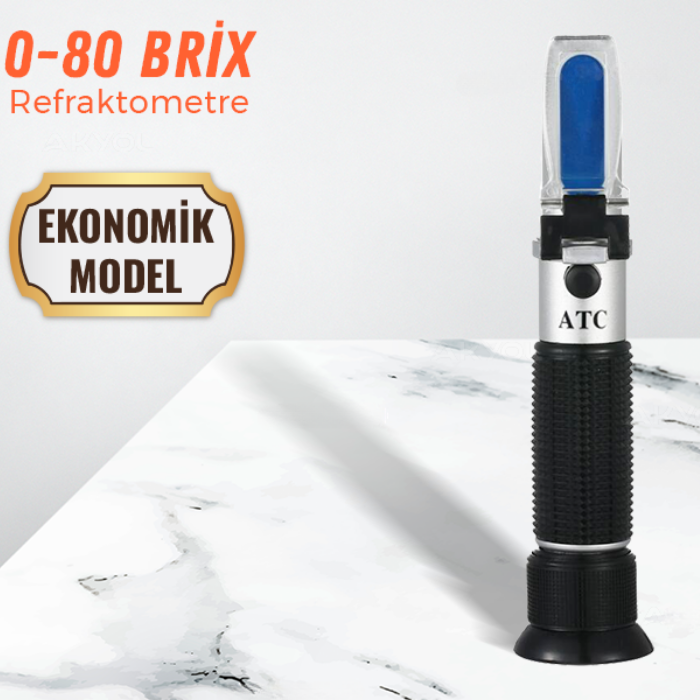 - Eko 0-80 brix refraktometresi; %0 ile %80 arası numunelerin brix ölçümünü yapabilen dürbün tip ölçüm cihazıdır.
