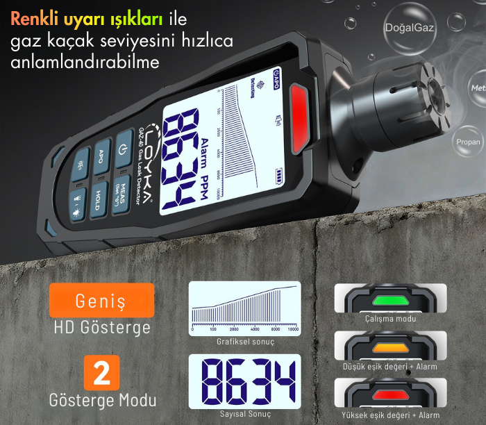 Loyka GAZ-40 Profesyonel Yanıcı Gaz Kaçak Dedektörü | Sesli ve Renkli Işıklı Alarm