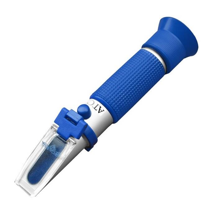 Kalibrasyon : Şeffaf kapağı kaldırıp camın üzerine 2-3 damla saf su damlatıp kapatın. Saf suyun hava kabarcığı olmadan bütün cam yüzeyini kaplaması gerekir. 30 saniye sonra şeffaf kapak ışık yönünde olacak şekilde mercekten bakın. Üst tarafı mavi alt tarafı beyaz olan bir çizgi göreceksiniz. Çizgi sıfır hizasına gelinceye kadar tornavida ile cihazın üzerindeki vidayı çevirin.