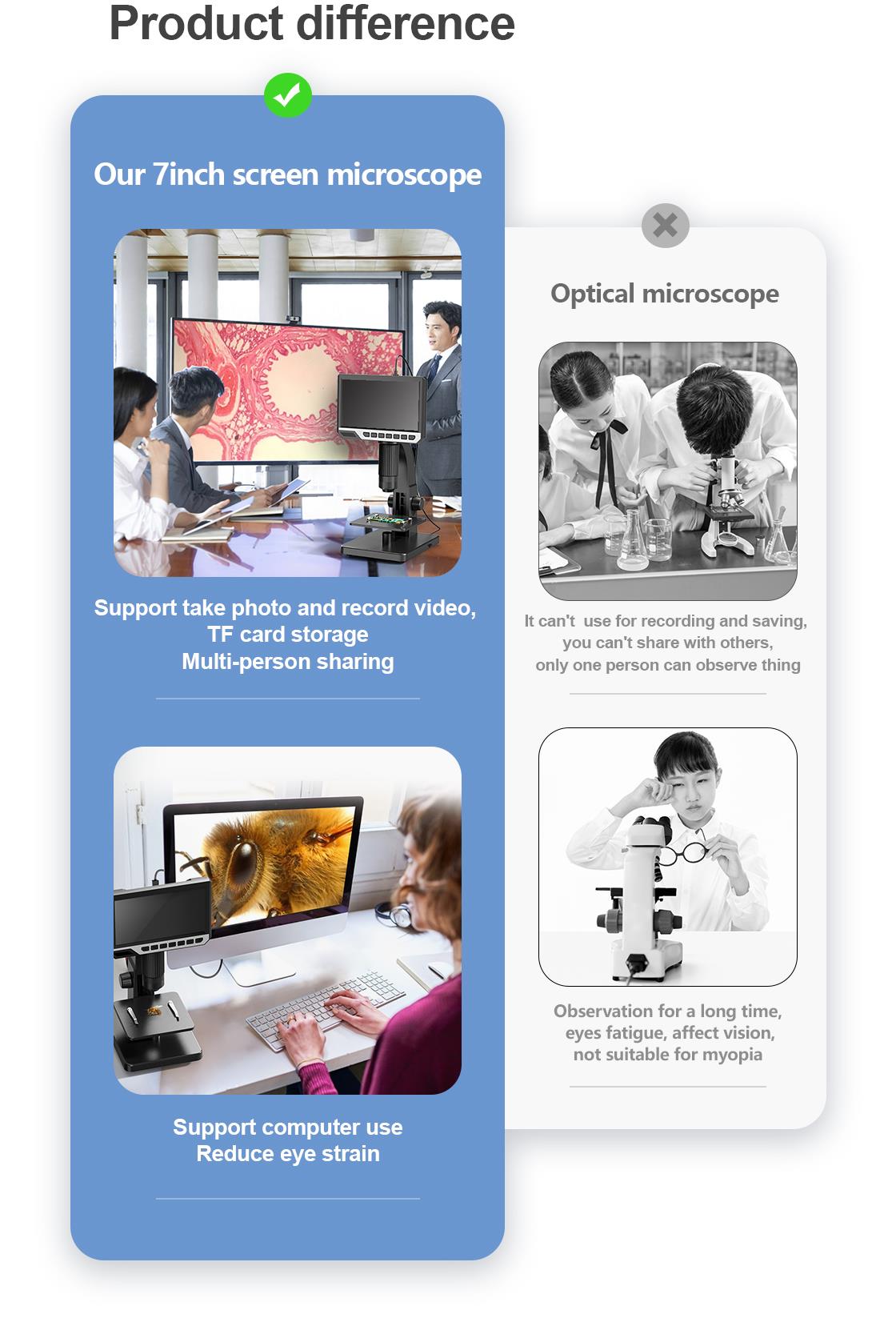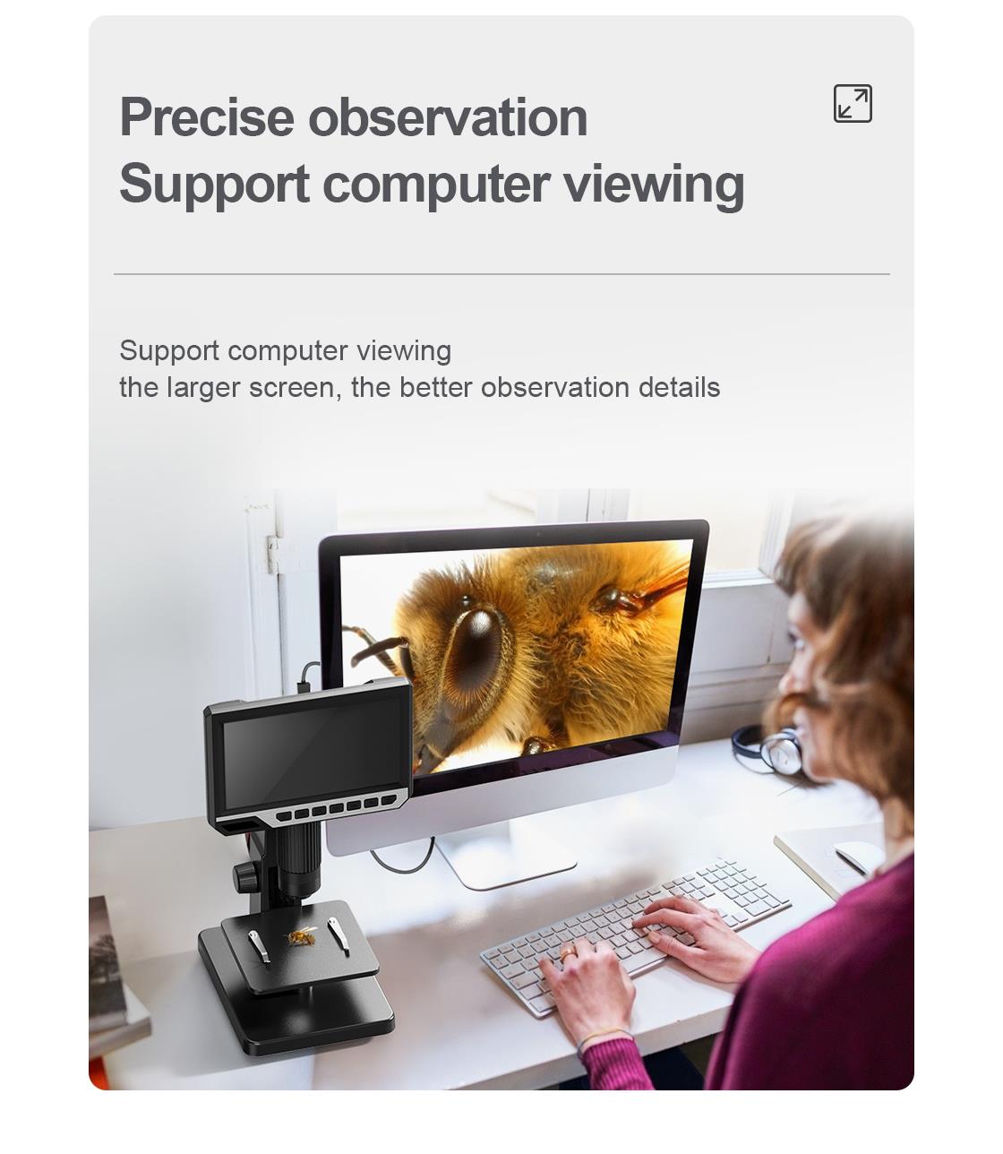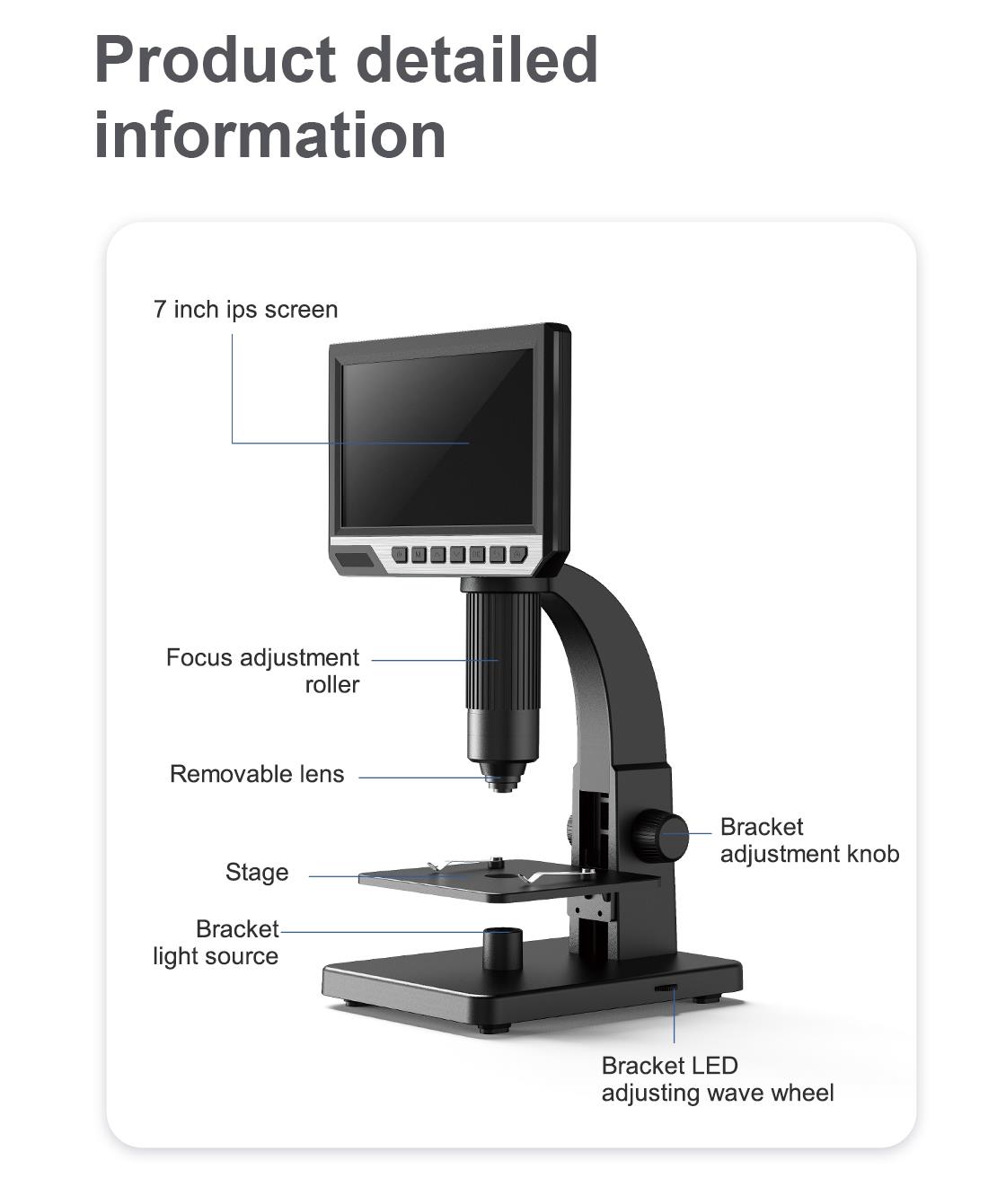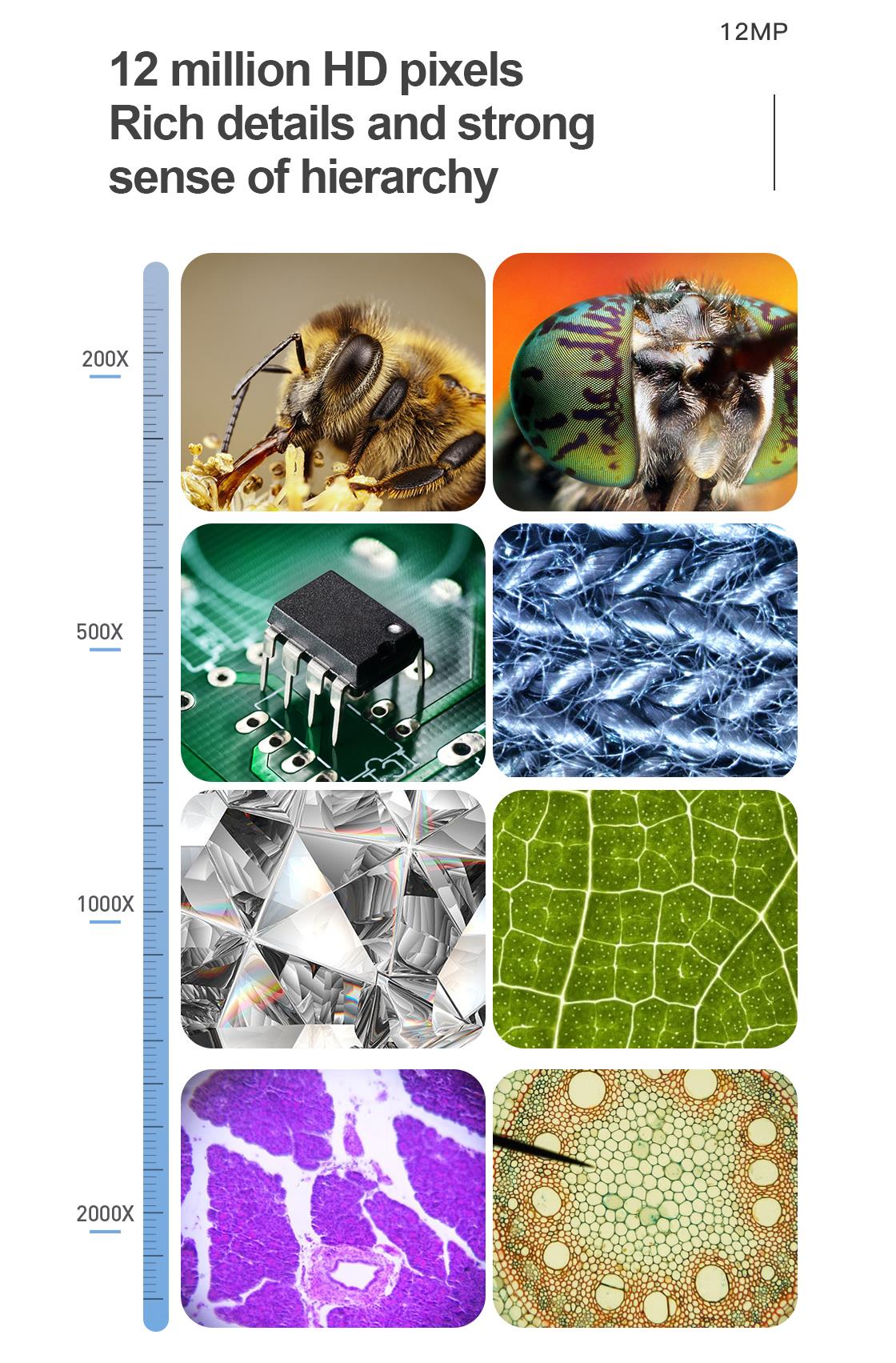• 10 parlak LED ışık ve 1 süper parlak LED ışık, üst ışık kaynağı gerçek nesneyi gözlemler, alt ışık kaynağı örneği gözlemler, görüntüleme daha üç boyutlu ve nettir.