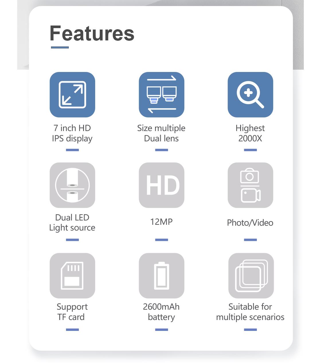 Inskam315 2000X 12MP Dijital Mikroskop Büyüteç 7 IPS Ekran PCB 2 Lens