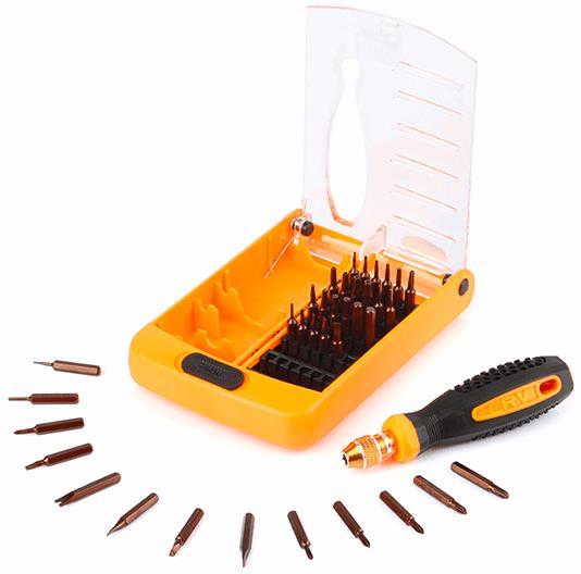 Jakemy JM-8108 Bit Set, çeşitlilik gösteren ihtiyaçlarınıza uygun cevap veren 37 parçadan oluşmaktadır. Profesyonel ihtiyaçlarınızı karşılamak üzere tasarlanmış tamir seti değişik tornavida uçlarıyla çeşitli alanlarda çalışmanıza imkan verir. Elektronik sektörü tamir, onarım ve bakım işlemlerinin yanı sıra mücevherat ürünlerin, optik ürünlerin üretimi ve montajında da kullanılmaktadır. Şık ve portatif çantasıyla taşıması kolay ve rahattır. Ergonomik olarak tasarlanan hassas onarım tornavida seti, kaymayı önleyen TPR kullanılarak üretilmiştir.