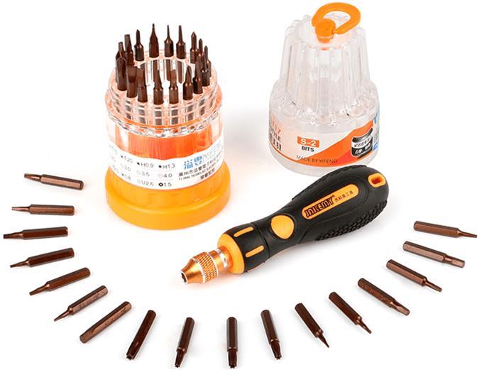Jakemy Tornavida Seti JM-8117 S2 içinde olan 37 adet değiştirilebilir uç ile cep telefonu tamiri, laptop tamiri, ev aletleri ve telekomünikasyon ürünlerinin tamiri gibi işlemlerinizde rahatça kullanabileceğiniz bir üründür. Tamir ve montaj işlemlerinizin yanı sıra ofislerde ve atölyelerin üretim aşamasında da kullanabileceğiniz onarım seti, oldukça ideal bir yardımcı olacaktır. Hafif ve kompakt tasarımı ile kolay taşınabilen set içerisinde bulunan tornavida çeşitleri, yüksek sertlik ve kalitedeki malzemelerden üretildiği için, uzun ömürlüdür ve deformasyonlara karşı dirençlidir.