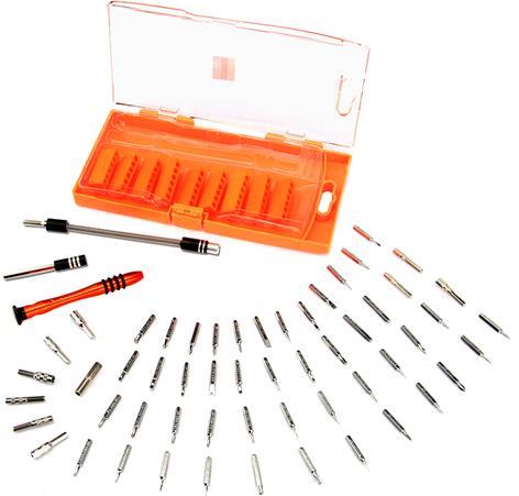 Güvenli tutuş ve rahat bir kavrama için kaymaz alüminyum ile üretilen Jakemy Bit Set 58 Parça JM-8126, darbelere karşı dirençli ve uzun ömürlüdür. Tamir seti içinde bulunan manyetik özellikteki uzatma çubuğu sayesinde derin vida başlık söküm işlemlerinizi kolayca yapabilirsiniz. Yumuşak yaylı uzatma çubuğu, tornavida çeşitleri ve 54 farklı tornavida ucu ile donatılmış bitset kolay taşınabilen portatif taşıma çantası içerisindedir.