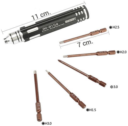 Özellikle model uçak, model helikopter onarım için tercih edilen JM-8154 tornavida seti 6 farklı tornavida ucu sayesinde pek çok farklı üründe kullanılabilmektedir. Ergonomik yapısı sayesinde kullanım rahatlığı sunan tornavida sapı, oyuncak tamiri ve bakımı için de ideal bir üründür. Yüksek kaliteli malzemeler kullanılarak üretilen bu tamir seti, onarım ve montaj uygulamalarınız en iyi yardımcınız olacak.