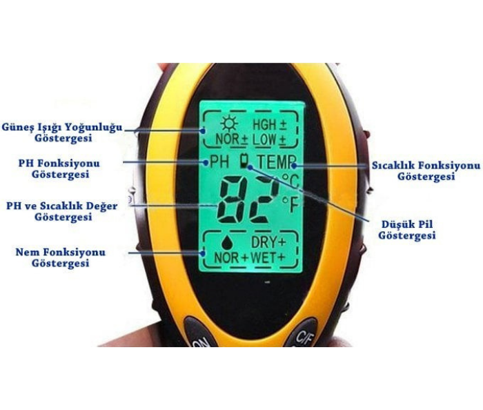 - Bu toprak ph ölçerde bulunan düşük pil göstergesi, yaptığınız ölçüm işlemleri yarım kalmadan pile müdahale etmenize olanak sağlar.