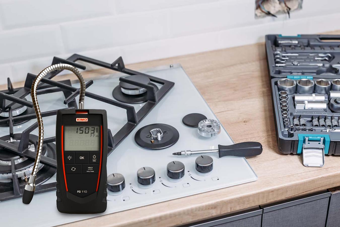 - Kimo FG110; Metan (CH4), LPG (izopropanol ve izobütan) ve diğer yanıcı gazları (hidrokarbonlar) algılayıp alarm verme özelliğine sahip, hassas gaz kaçak dedektörüdür.