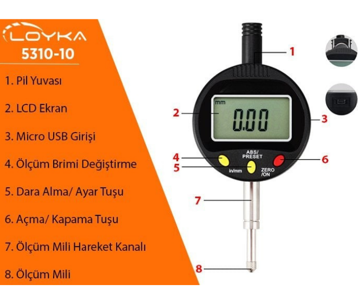 • Loyka 5310-10 komparatör saati 0 ile 10 mm arasında ölçüm yapmaktadır.