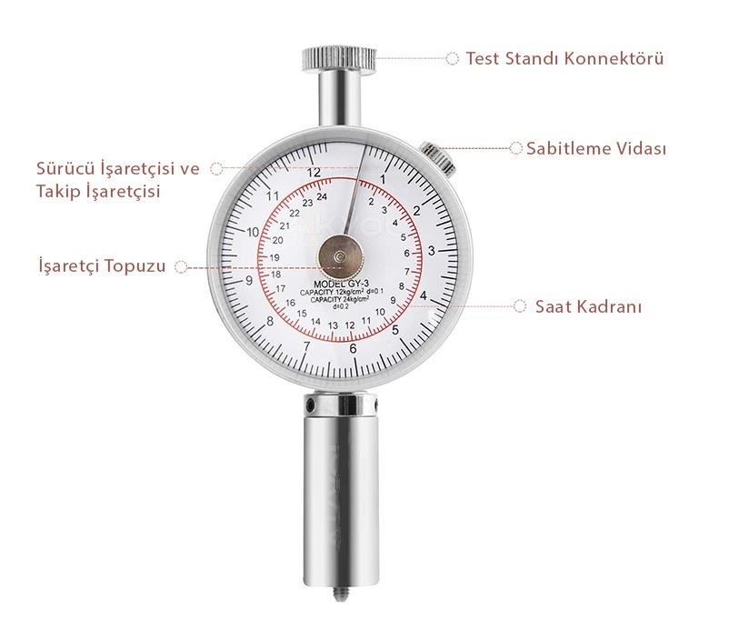 Loyka GY-3 penetrometre meyve sertliği ölçüm cihazı; meyvenin olgunluğunu kontrol etmek için kullanılan 1-24 kg / cm² kapasiteli meyve sertlik ölçerdir. Olgunluk meyve rengi, şekli ve sertliğine göre belirlenebilir. Cihaz meyve üzerine bastırılır ve sertlik değeri okunur.