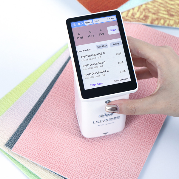 Linshang LS175 renk ölçüm cihazı, 20mm genişliğindeki ölçüm açıklığı sayesinde tekstil, kumaş ürünleri gibi dokulu veya pürüzlü yüzeye sahip malzemelerin rengini en hassas şekilde belirlemek için tasarlanmış, dokunmatik renkli ekranlı profesyonel bir renk tespit cihazıdır.