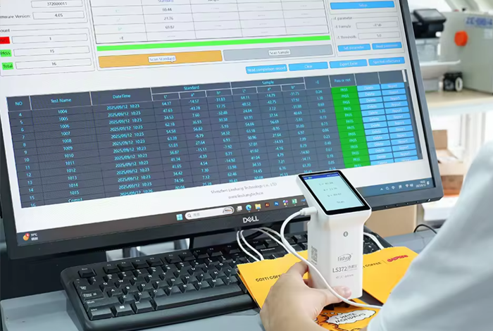 Linshang LS372 renk ölçer; baskı sektörünün talep ettiği yüksek hassasiyet standartlarına uygun olarak tasarlanmış, akıllı dokunmatik ekrana sahip profesyonel bir renk ölçüm cihazıdır. Baskı süreçlerinde yaygın olarak kullanılan D50 standart ışık kaynağı sayesinde, numunelerin referans gözlem koşullarındaki renk değerlerini doğru ve tutarlı biçimde analiz eder; böylece ölçüm sonuçlarının sektörel doğruluğu ve güvenilirliği maksimum seviyeye çıkar.