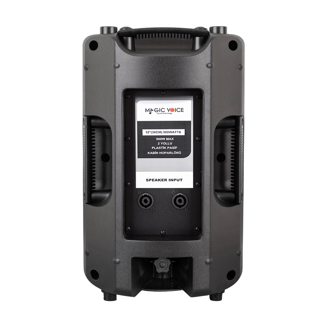 MagicVoice MV-3412, üstün ses kalitesi ve dayanıklılığı bir arada sunan bir pasif hoparlördür. 12 inç subwoofer, güçlü bass ve net tizler üretir. Plastik kabin yapısı, hoparlörü hafif ve taşınabilir kılar. 500 Watt gücü sayesinde geniş alanlarda bile etkili bir ses performansı sunar. 50 Hz ile 18 kHz frekans tepkimesi, geniş bir ses yelpazesi sunarak müzik dinleme deneyiminizi daha keyifli hale getirir.