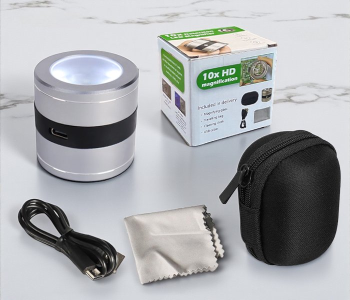 Lup büyütecin paket kapsamı; 1 adet MG8018 büyüteç, 1 adet fermuarlı mini çanta, 1 adet temizleme bezi, 1 adet şarj kablosu, 1 adet kullanma kılavuzundan oluşmaktadır.