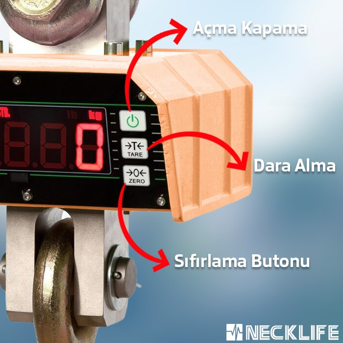 - Uzaktan kumandası ile cihazın darasını alabilir, ekrandaki değeri sabitleyebilir ve toplam hafıza gibi işlemlerinizi yapabilirsiniz.