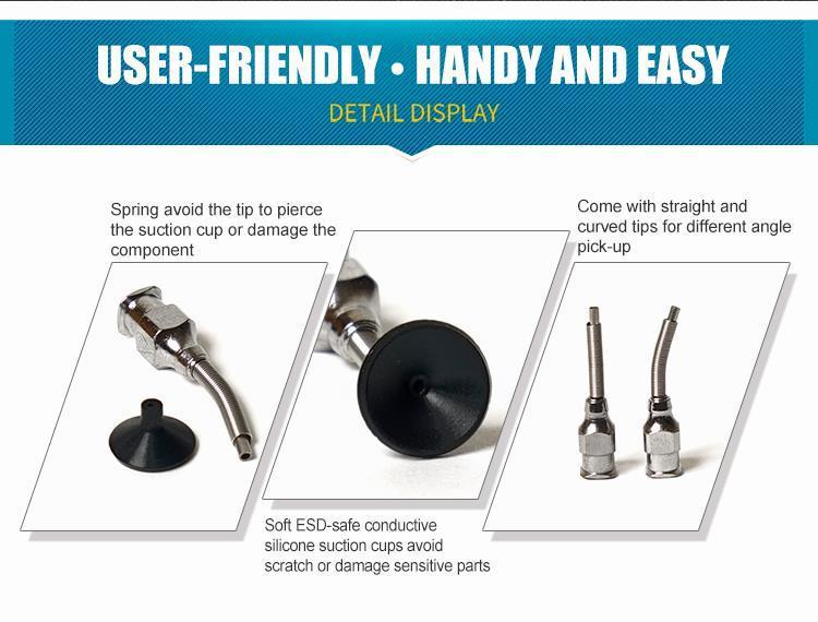 - Ergonomik antistatik tutma sapı, kalem tipi vakum tutucu.