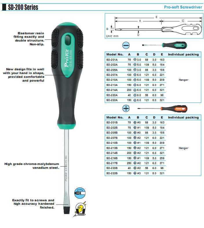 Proskit SD-200 serisi tornavidalar, kullanımı rahat, kaliteli ve üstün dayanıma sahip profesyonel ürünlerdir.