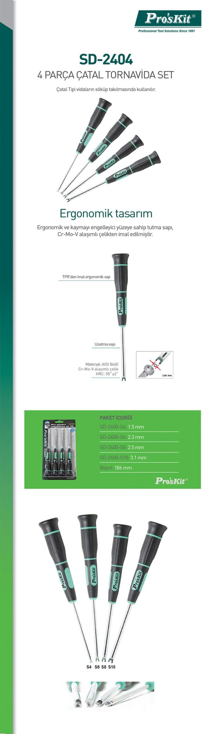 Proskit Sd-2404 4 Parça Çatal Tornavida Set