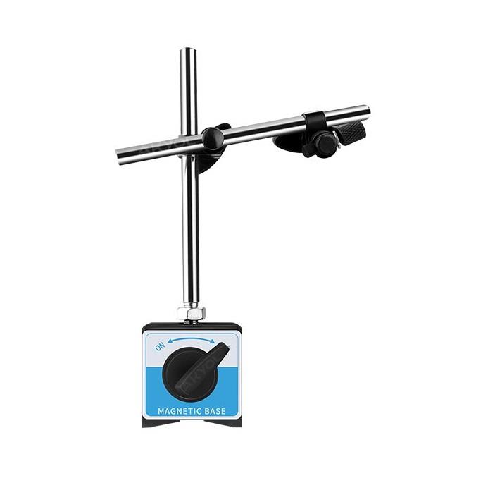 Standın üzerindeki döner anahtar alt tarafta bulunan mıknatısın çekim gücünü ayarlamak için kullanılmaktadır. OFF tarafına çevirdiğinizde zemine tutunma gücü zayıflar ON tarafına çevirdiğinizde yüksek tutunma gücü sağlar. Bu şekilde salgı komparatör standını metal yüzeylere kolayca sabitleyebilirsiniz.