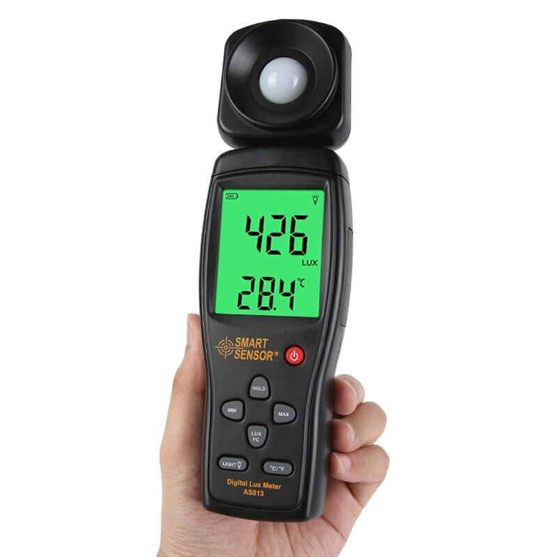 Smart Sensor AS 813 Lüksmetre; kalite kontrol işlemlerinde, eğitim kurumlarında, deney ve eğitim işlerinde , inşaat sektöründe, aydınlatma kontrollerinde vb. işlemlerde ortamdaki ışık miktarını tespit etmek için kullanılan, taşıması kolay ışık ölçer çeşididir.