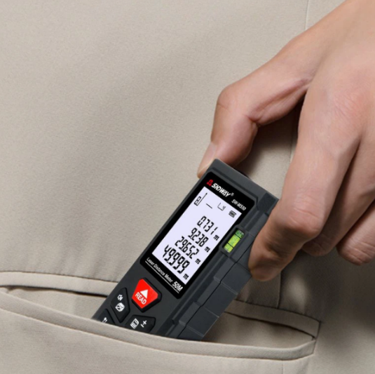 Sndway SW-MS50 lazermetre cihazı 50 metre mesafeye kadar uzunluk, , alan, hacim ve pisagor ölçümleri yapabilmektedir.