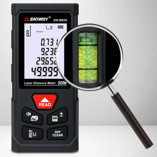 SNDWAY SW-MS50 lazer mesafe ölçer cihazı; başlangıç serisi olmasından dolayı ekonomik fiyatıyla öne çıkan, inşaat sektörü başta olmak üzere birçok alanda mesafe ölçüm ihtiyaçları için ulaşılabilir bir uzunluk ölçüm cihazıdır.