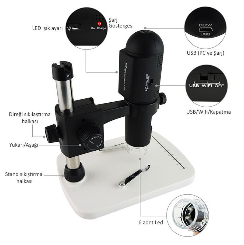 SL18 dijital mikroskop; 200x ‘e kadar büyütme yapabilen, 1280×720 çözünürlük ile kablolu ve kablosuz görüntü aktarımı ile görüntü verebilen mikroskoptur.