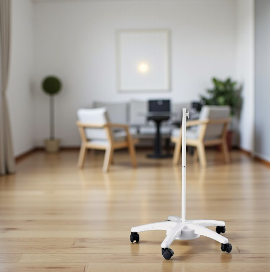 T5 Premium büyüteç ayağı; geniş tabanı ve 5 tekerlekli tasarımı sayesinde devrilmeye karşı güvenli, sessiz ve kolay hareket imkânı sunar. Profesyonel kullanım için özel olarak geliştirilen bu aparat, büyüteçlerin güvenli, stabil ve ergonomik şekilde taşınmasını ve sabitlenmesini sağlar.
