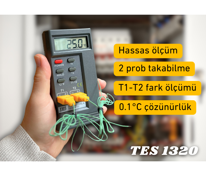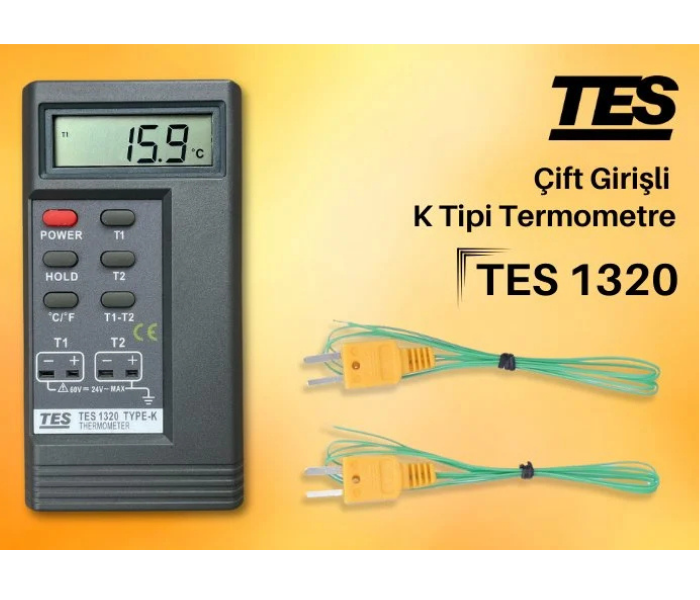 - Tes 1320 ikili ölçüm cihazı; k tipi termokupl 'lar için okuyucu görevi görmektedir. Yanında gelen problar da k tipi girişe sahip bir problardır, bu ve bunun gibi k girişine sahip her k tipi probu markası fark etmeksizin okuyabilmektedir.