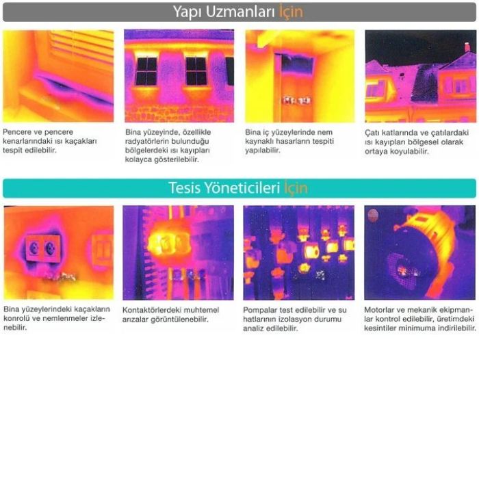 - HVAC sistemleri, elektrik panoları, motor yüzeyleri ve daha birçok profesyonel alanda hızlı ve güvenilir ölçüm yapar.
