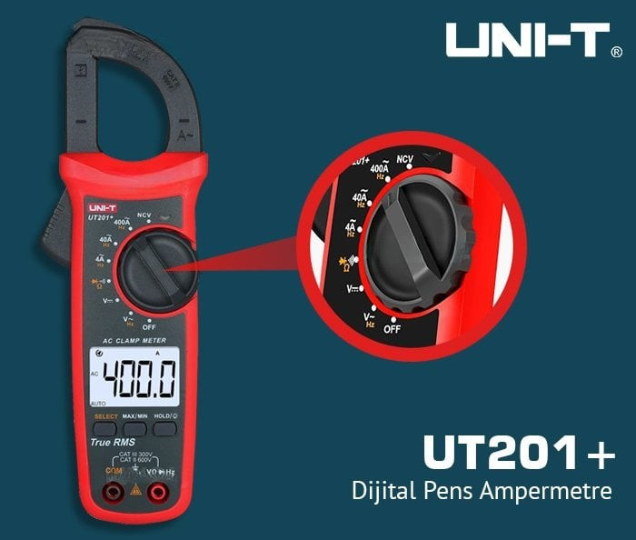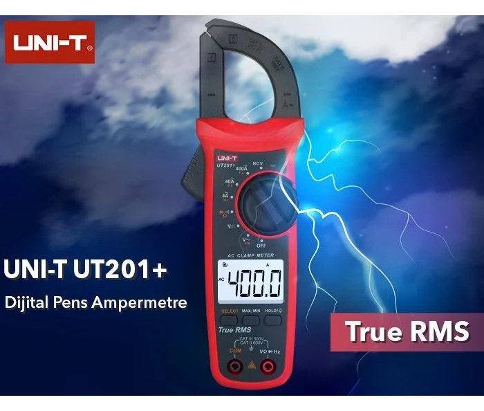 UNI-T UT201+ dijital pensampermetre; sıkışık güç kabloları ya da iletkenlerde temassız akım ölçümü yapmanıza olanak sağlar. Kolay kavrama mekanizması sayesinde her bir kabloyu kolay ve güvenli bir şekilde kavrayabilmektedir. Bir hattan geçen akımı kelepçe yöntemiyle devrenin hattını kesmeden ölçen cihazlara dijital kelepçe multimetreler yani dijital pensampermetreler denmektedir.