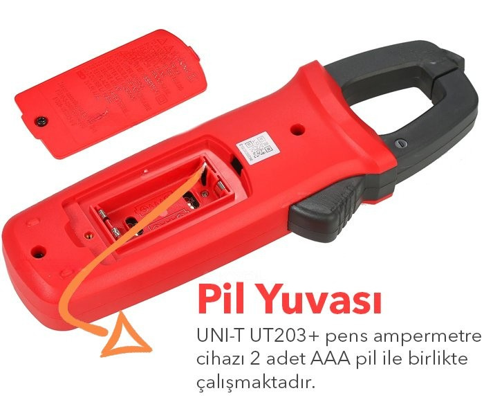 • UNI-T UT203+ pensampermetre ile; AC/DC gerilim, AC/DC akım, direnç, diyot, frekans ve kapasitans ölçümleri yapılabilmektedir.