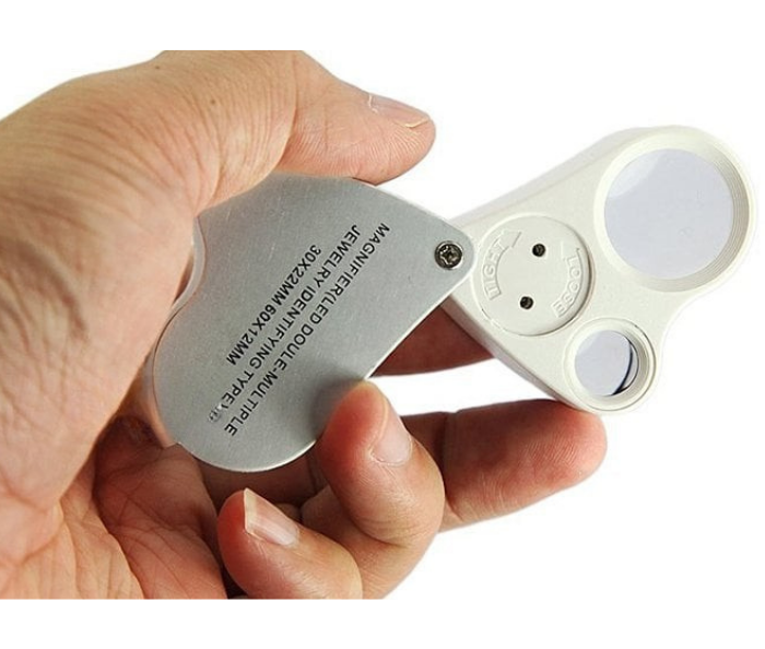 9889 çift mercekli mini büyüteç; üzerinde bulunan iki farklı mercek sayesinde 30x ve 60x'e kadar yakınlaştırma yapabilen, kuvvetli led ışıklı, çok pratik bir büyüteçtir.