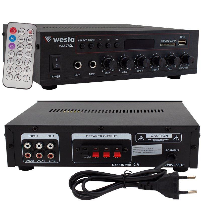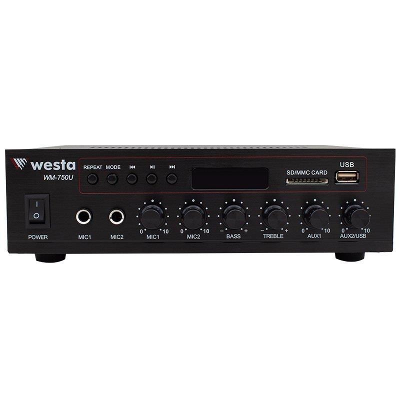 - Westa WM-750U 80 Watt USB-SD-Bluetooth 2 Mikrofon Girişli Trafolu Anfi